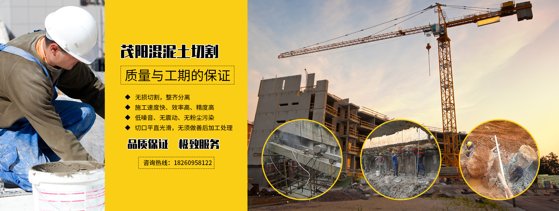 廣西茂陽建筑工程有限公司成立于2014年,發(fā)展至今現(xiàn)有員工153人,是由一批專業(yè)高效的技術(shù)團隊組成的工程公司,擁有注冊資本1000萬元,年施工能力1500萬元以上。目前有20臺繩鋸切割機,3臺馬路碟鋸機,8臺水鉆機,3臺風(fēng)炮機,2臺挖機,23臺鉆孔機。茂陽主要服務(wù)項目有鋼筋混泥土切割,水下切割、加固、植筋、鉆孔、補強、切割加固、房屋切割加固/破碎拆除、橋梁切割加固/破碎拆除、建筑切割加固/破碎拆除等特種工程......